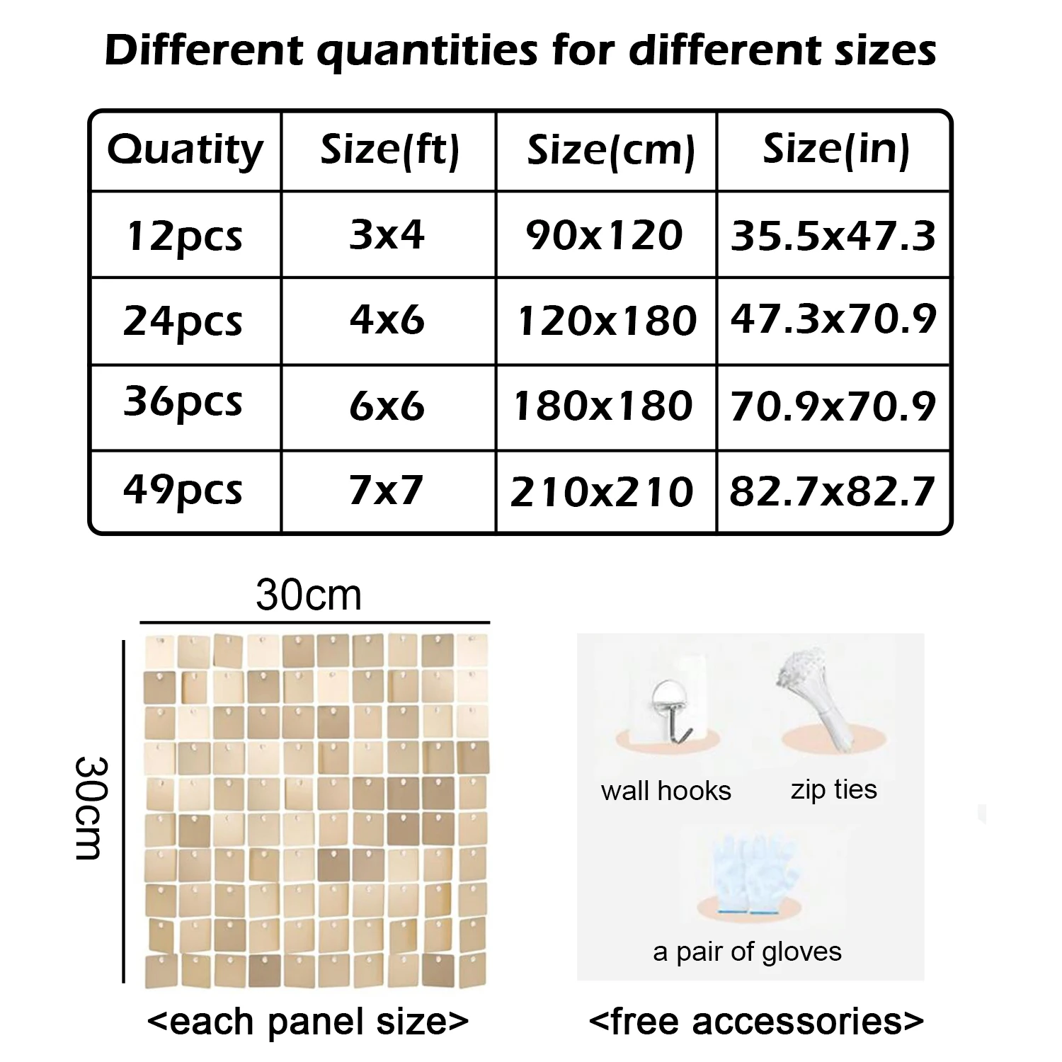 12/24/36/49pcs Large Shimmer Wall Backdrop Champagne Gold Square Glitter Panels DIY Wedding Anniversary Birthday Party Backdrop