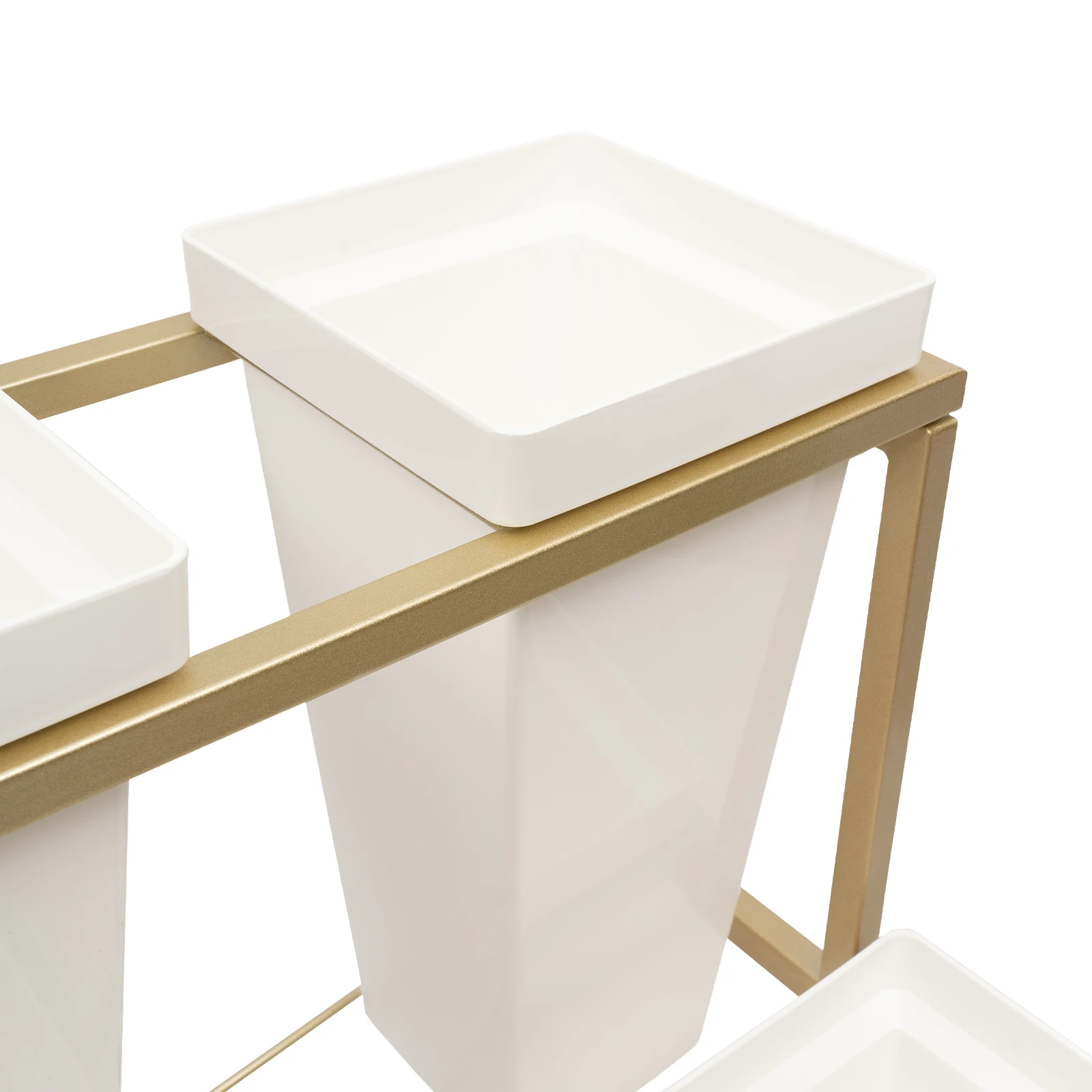 Simple Elegant Design: The golden rectangular stand and white buckets can ideally blend into various decorative styles, which can be harmoniously matched from modern simplicity to retro romance.