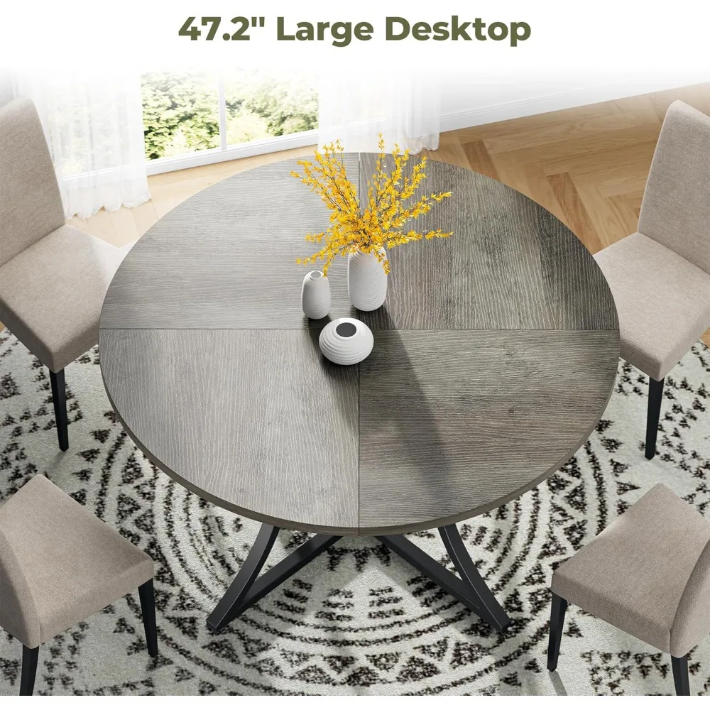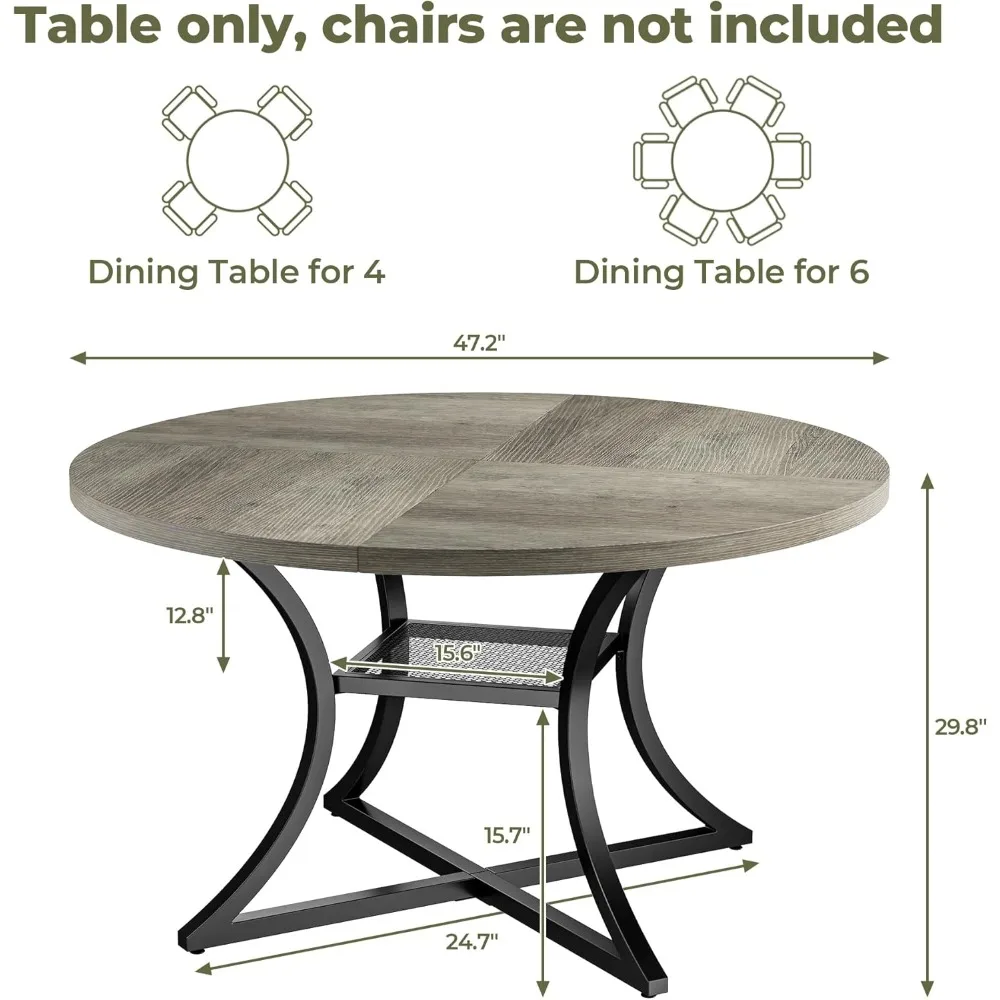 - ROUND DINING TABLE FOR 4-6 DINERS: This dining table measures 47.2"(L) x 47.2"(W) x 29.8"(H), perfectly sized to comfortably seat up to 4-6 people. The compact design makes it an ideal breakfast table for smaller dining areas or kitchens.The circular shape encourages conversation and socializing during meals