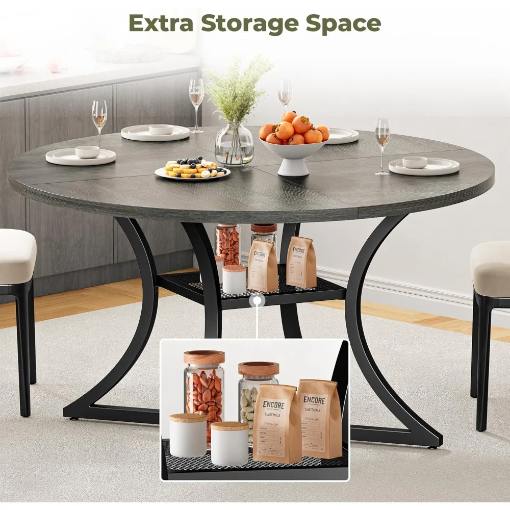 - AMPLE STORAGE: The round table boasts a 47.2" spacious tabletop, providing ample space for meals and gatherings. Additionally, it includes a generous 15.6" built-in storage shelf, meticulously designed for storing dinnerware sets, table linens, and decorative items. This shelf helps maintain a clean and clutter-free tabletop, ensuring easy access to essentials