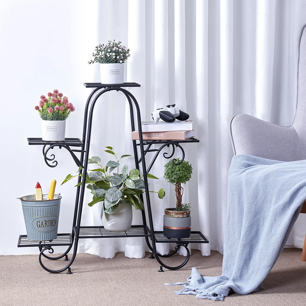 6 Tier Metal Plant Stand, Garden Patio Flower Rack, Step Design, Outdoor, Indoor, Wrought Iron