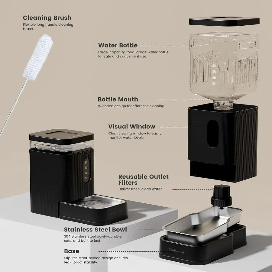 Automatic Dog Water Dispenser with Gravity Feeding System and Stainless Steel Bowl for Large Pets 6.5L HighCapacity BPAFree Wat