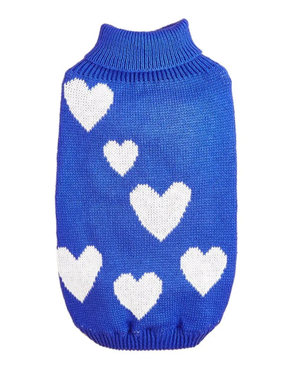 Cute Dog Sweater Heart Pattern Warm Pet Jumper Cat Puppy Coat Jacket Winter Clothes High Collar Knitwear For Cat Small Big Dog