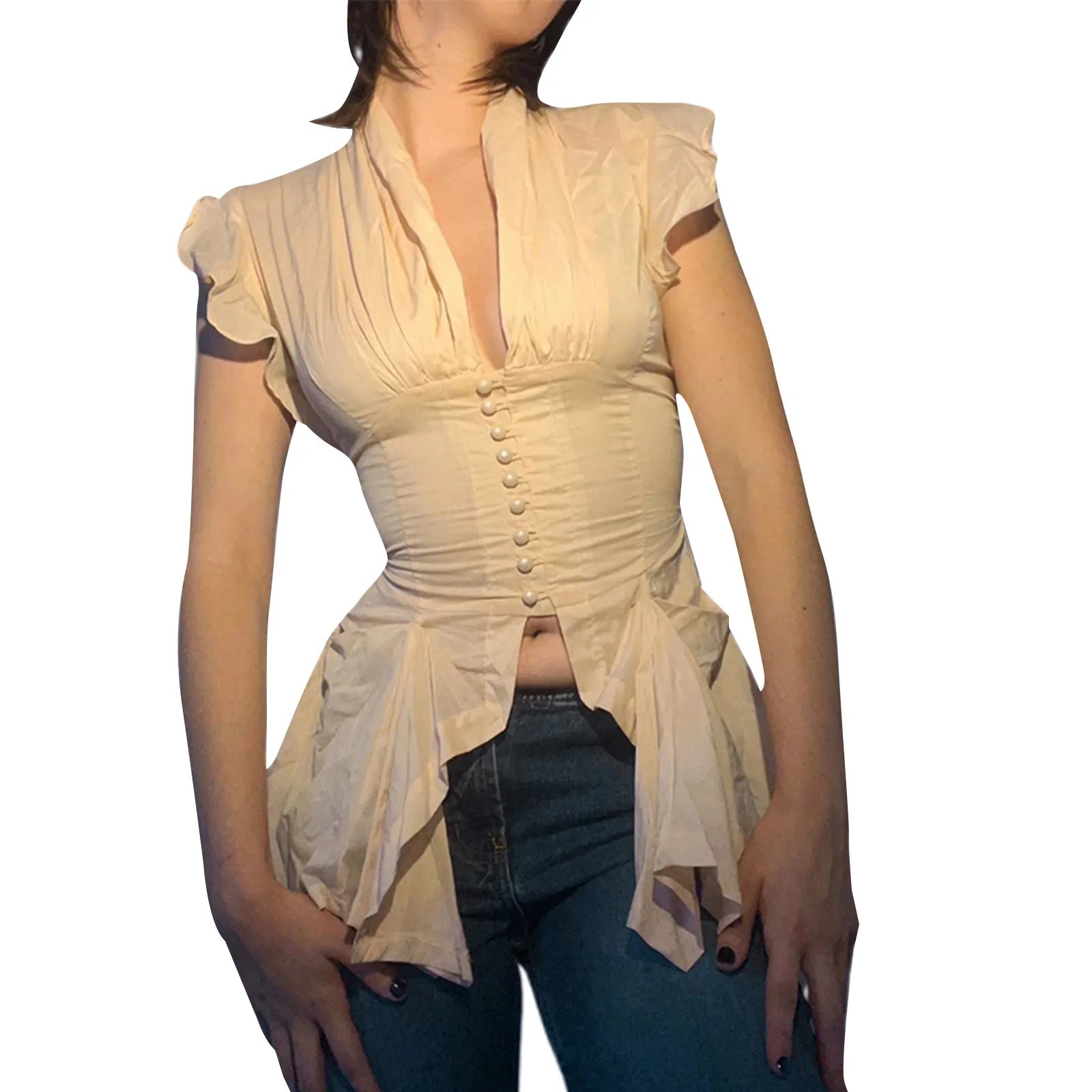 Womens Fit Shirts Ruffle Sleeveless Button Down Split Tops Spring Summer BlousesFeatures: