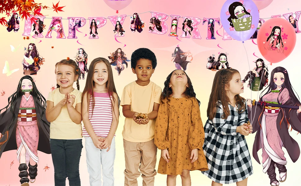 Nezuko party supplies for girl birthday are perfect for nezuko party, nezuko birthday party, nezuko kamado party, anime theme party, park party, school party and other party decorations, and can also be used to decorate children's rooms and living rooms.
