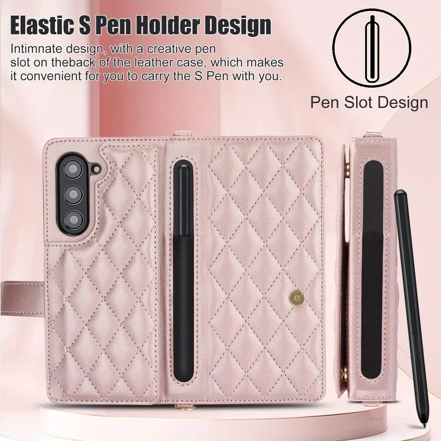 PU Leather Flip Wallet Case For Samsung Galaxy Z Fold 6 5 4 3 5G With Holder Crossbody Wrist Strap Card Slot Stand Phone Cover