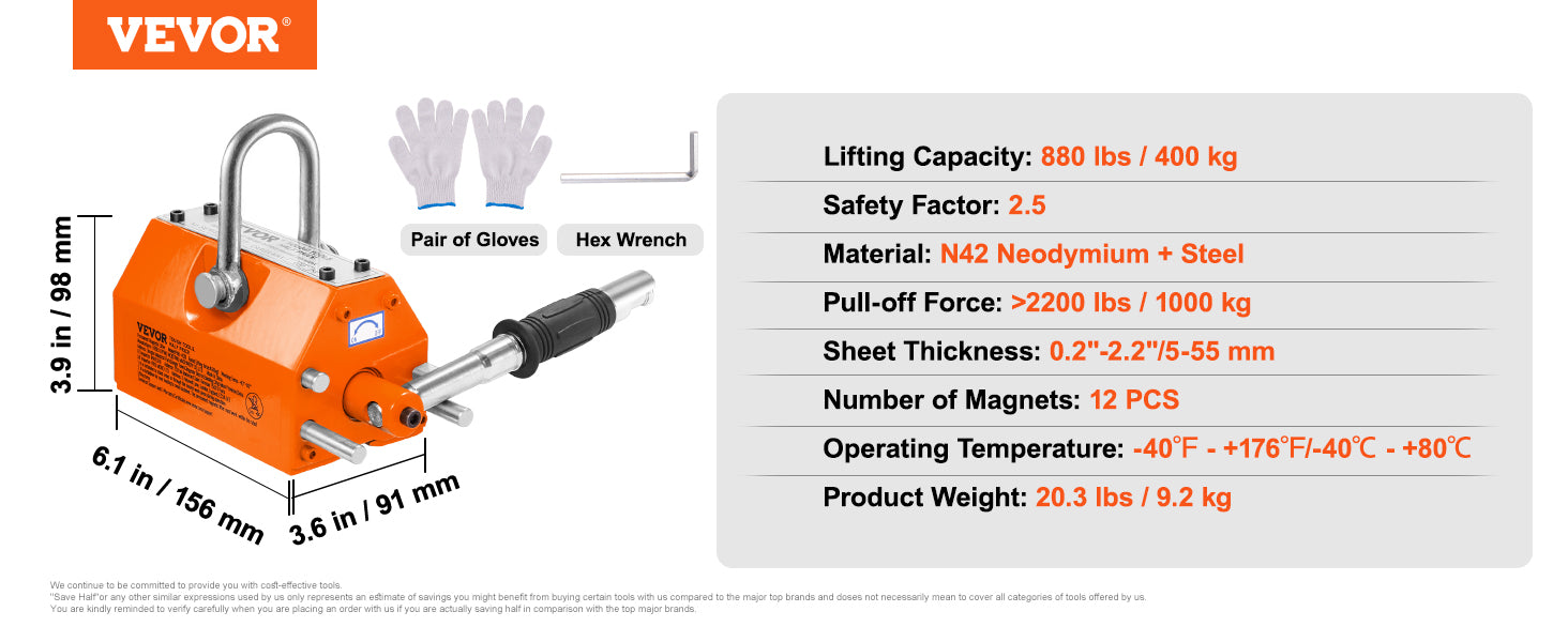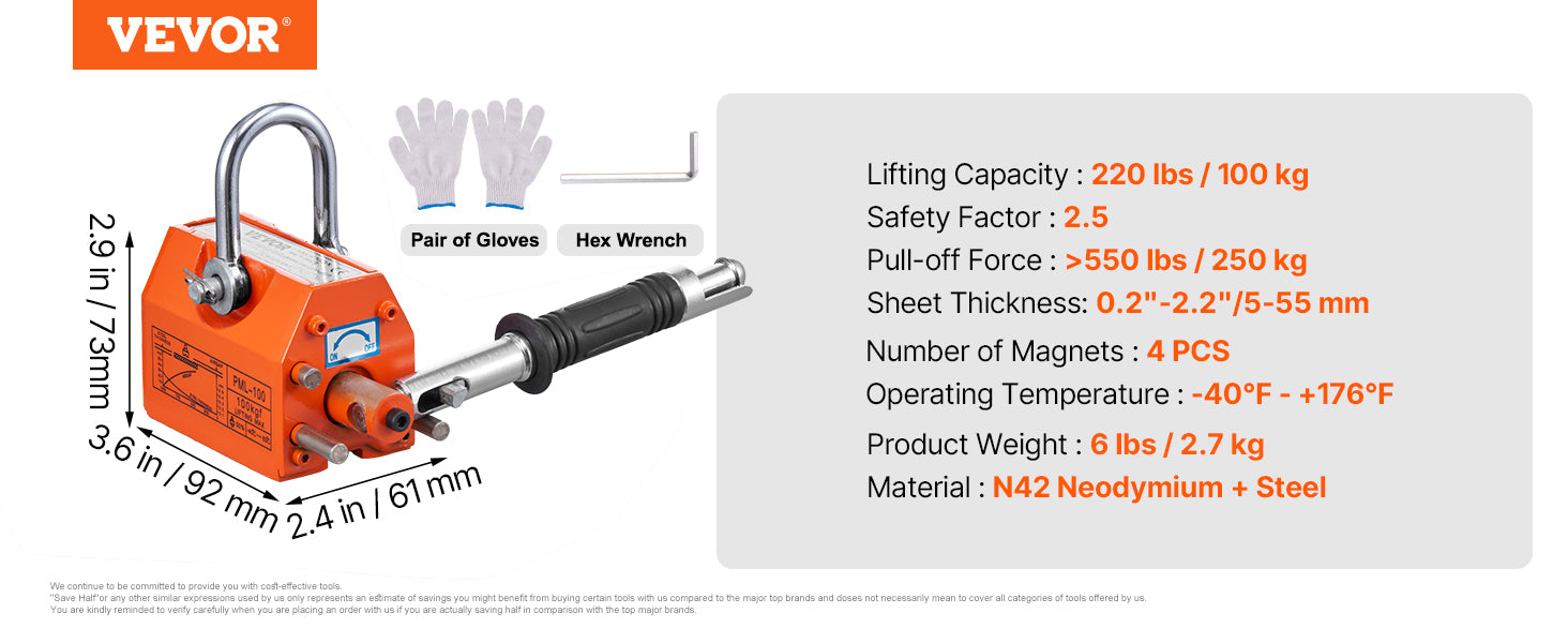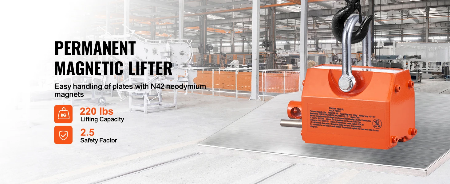 660 lbs Lifting Capacity: Built with N42 neodymium magnets, this permanent magnetic lifter can lift 660 lbs/300 kg loads. With an upgraded 2.5 safety factor, it is solid and reliable enough to lift steel sheets, blocks, rods, cylindrical, and other magnetic materials.