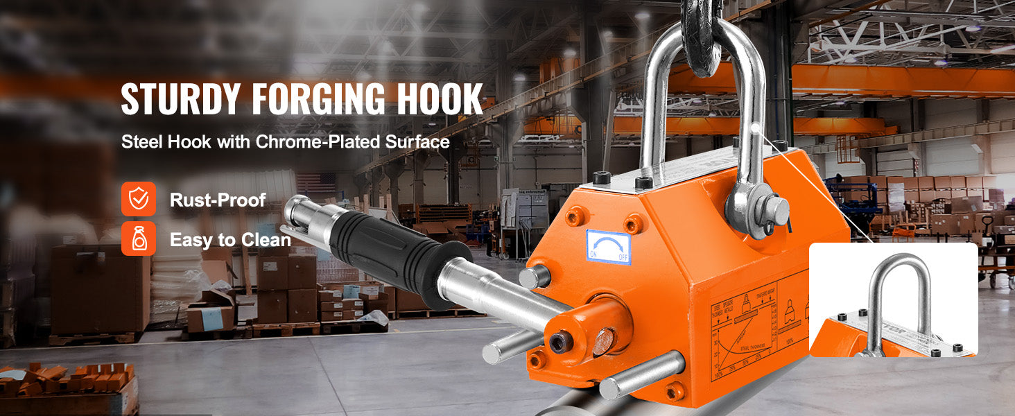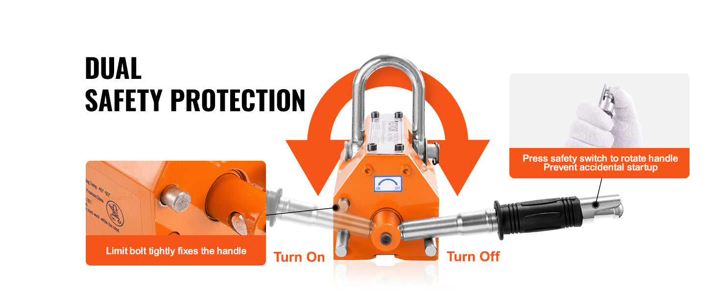 Operate Without Sweat: Our permanent magnet crane features a flexible rotating shaft, making it easier to control the switch. Just turn left to turn on the suction and right to turn off the suction. For added security, the limit bolt is designed to fix the handle.