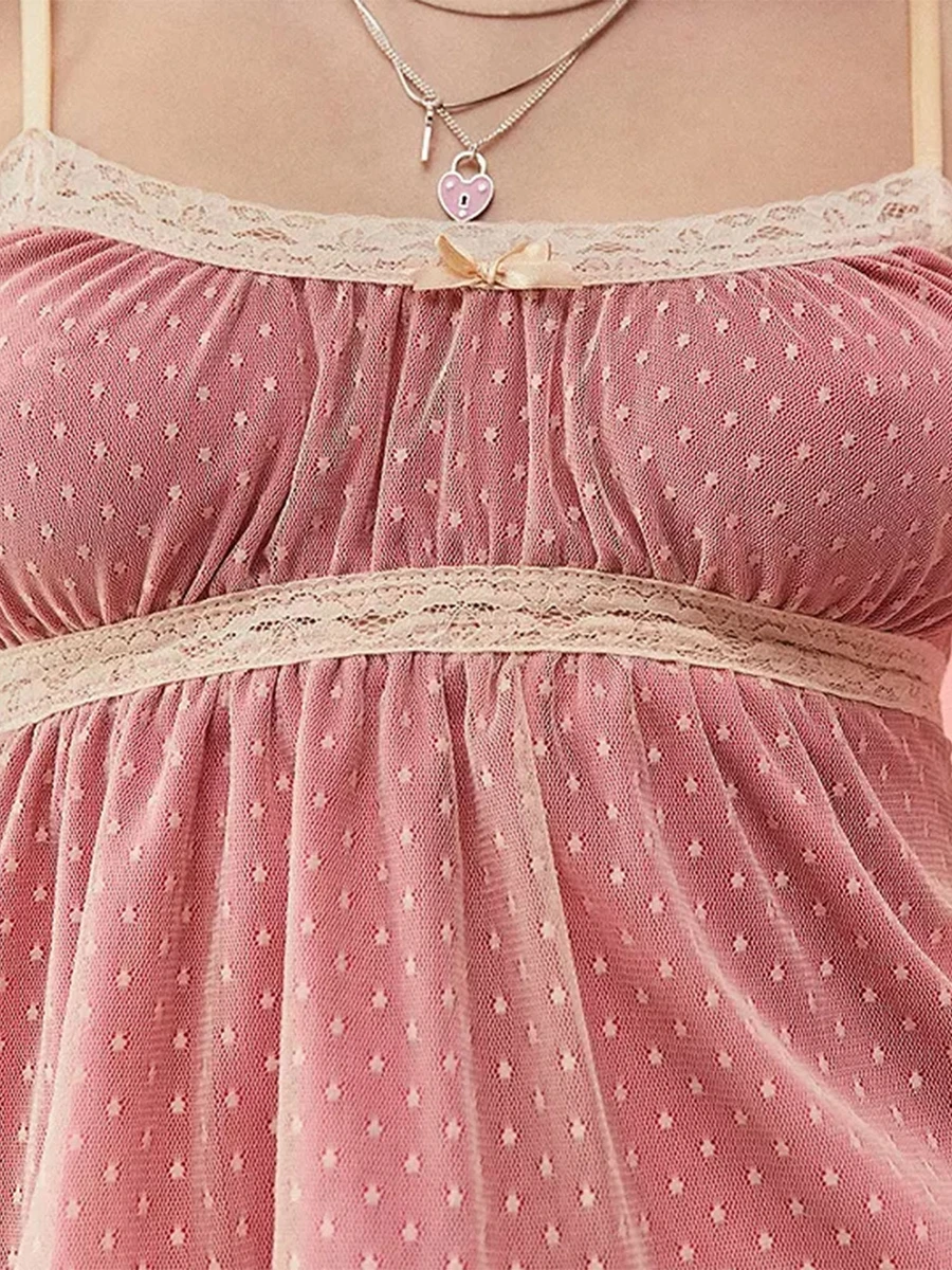 Women's Sweet Cami Tops Mini Bowknot Front Spaghetti Strap Lace Trim Vest Show Navel Cropped CamisoleSize (cm)